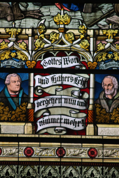 Zum Pfingstfest fanden in unserer Region in den evangelischen Kirchen die Konfirmationsgottesdienste statt, in denen die Jugendlichen klar und deutlich vor Gott und der Gemeinde sagen: Ja, ich bin evangelischer Christ. Dabei hätten sie auch kürzer sagen können: Ja, ich bin Christ. Ich sage Ja zu meiner Taufe. Denn »Evangelisch sein« heißt wörtlich übersetzt »von der guten Nachricht, der Botschaft der Liebe Gottes, leben«. Daraus leben schließlich alle Christen. So ist „evangelisch“ keine trennende Konfessionsbezeichnung mehr, sondern genau genommen sogar der „kleinste gemeinsame Nenner“, das verbindende Glied zwischen allen Auslegungstraditionen der Heiligen Schrift. Wir alle können leben von der guten Nachricht, dass Gott uns geleitet in unserem Leben. Wir können erleben, dass uns SEIN Wort Kraft und Halt gibt. Diese Erfahrung teilen wir mit vielen Generationen vor uns. Wie weit das zurückreicht, können wir an den schönen alten Kirchgebäuden in unseren Städten und Dörfern sehen. Manchmal, wie auf diesem Glasfenster aus dem altarraum der Pößnecker Stadtkirche, haben sie uns auch wörtlich weiter gegeben, was ihnen in den Herausforderungen des Lebens Halt und Orientierung gab. Zwei ältere Herren schauen zu uns in die Gemeinde. Sie sind unschwer zu erkennen als Martin Luther und Philipp Melanchthon. Dazwischen das Spruchband: „Gottes Wort und Luthers Lehr vergehen nun und nimmer mehr“. Das war zum Zeitpunkt der Entstehung des Fensters noch klar konfessionstrennend gemeint. Aber das waren ganz andere Zeiten als heute. Da hätte sich niemand vorstellen können, dass gegenwärtig alle Konfessionen gemeinsam in unserer Region auf einen Bevölkerungsanteil von großzügig gerechnet 15 % kommen. Da wird es allerhöchste Zeit, das Verbindende unter uns zu suchen und zu fördern. Die Traditionen sind dabei durchaus hilfreich – wenn wir aus ihnen lernen und uns wertschätzend mit ihnen auseinandersetzen.
